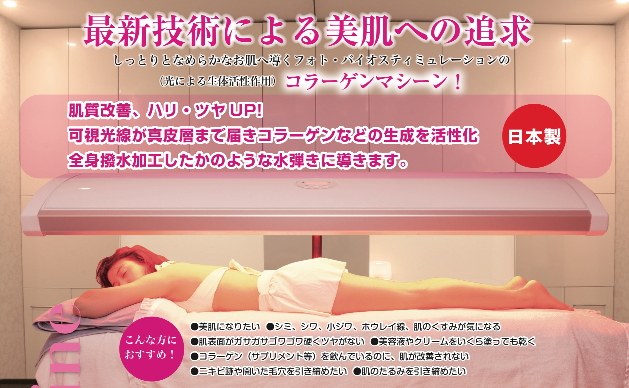 全身に向けてピンク色の温かいコラーゲンの光が出ます。