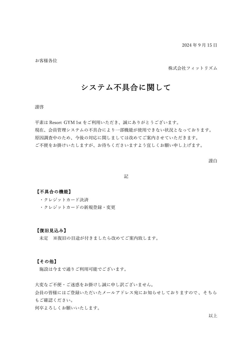 ジム名 | Resort GYM 1st(リゾートジムファースト) |